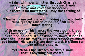 Content notes: Charlie's genitals are exclusively referred to with synonyms of the word "penis". Charlie can't speak while transformed, but he is still able to non-verbally express consent. There is one mild instance of pain play.